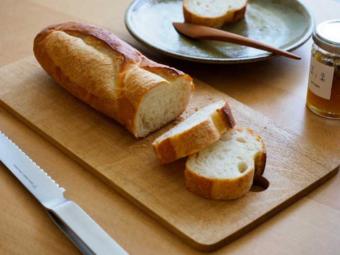 キッチンではパンを切るときに使っています。そしてそのまま木皿として使います。